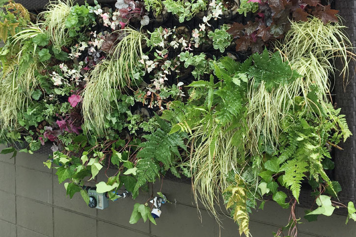 住宅・オフィスの壁面を緑と花で彩ります。あまりお庭を取れない場合にも、壁面ならグリーンスペースを設けられ、見る人の印象にも強く残ります。屋内外どちらにも設置が可能です。